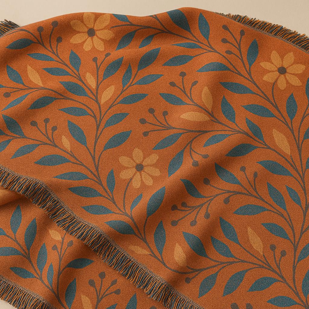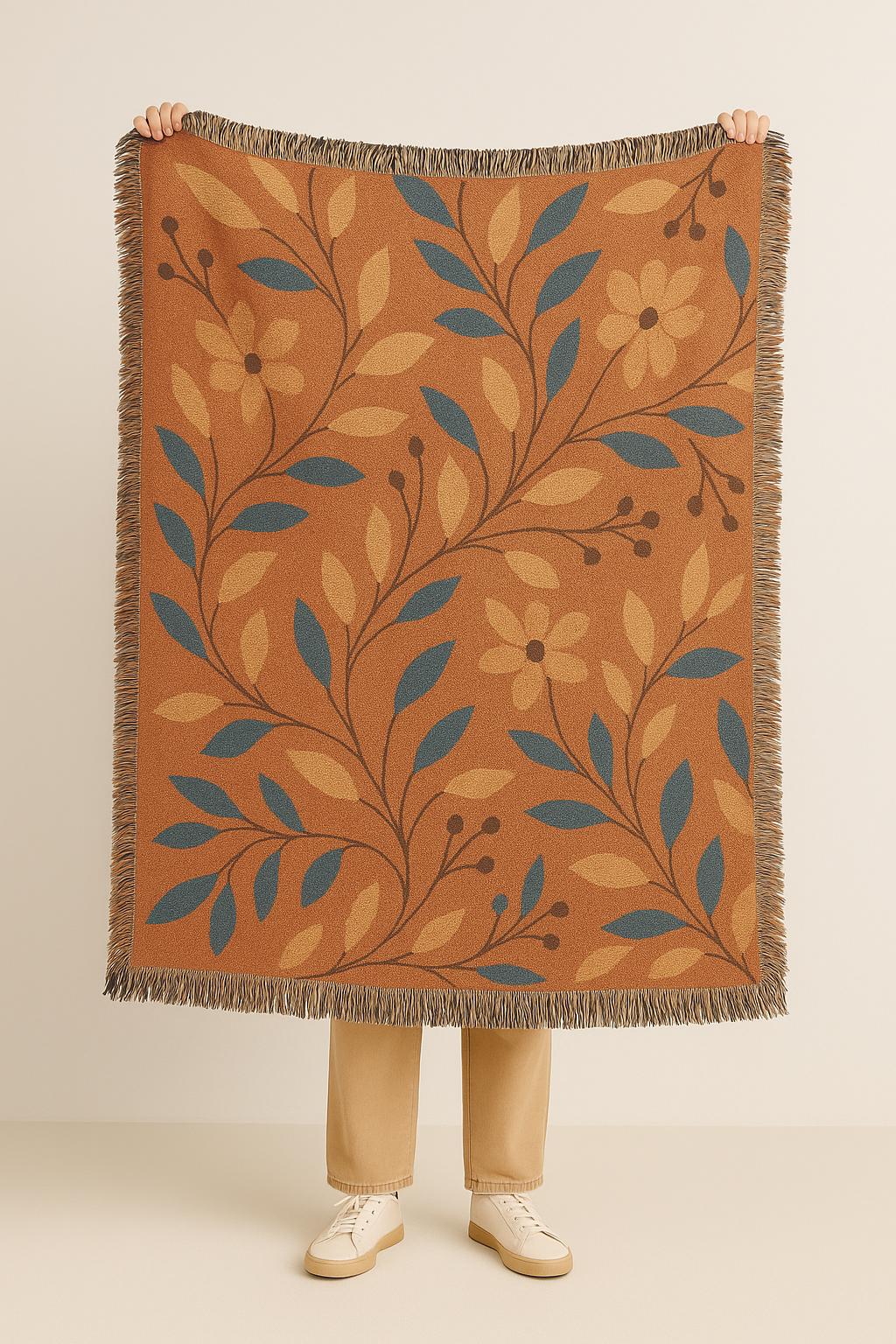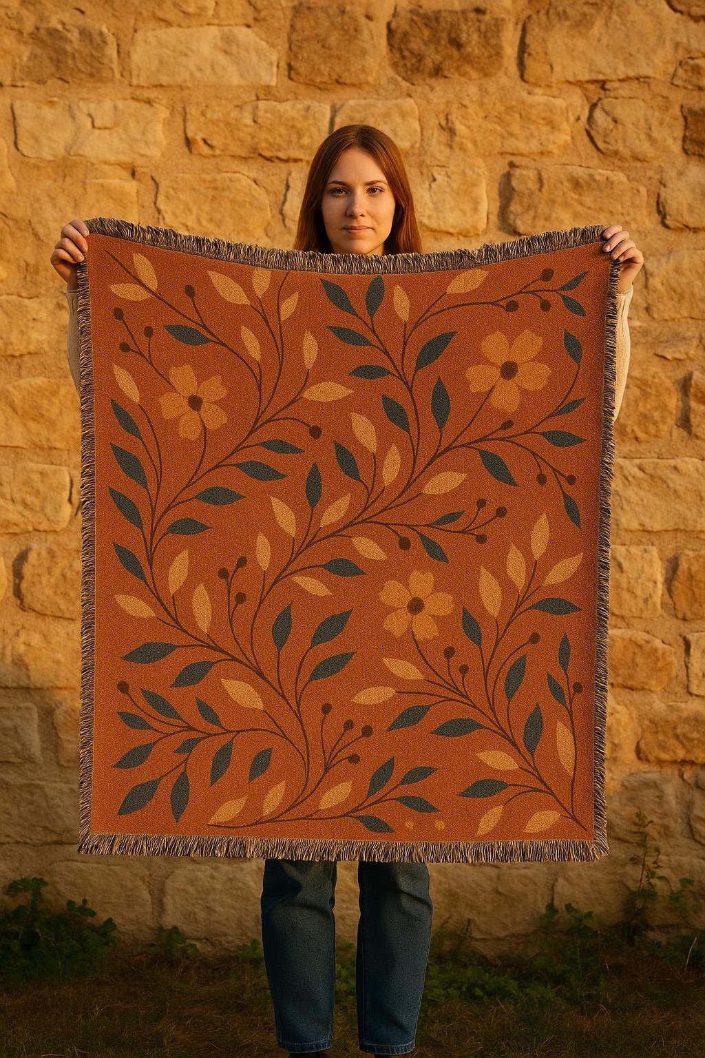 Add a touch of earthy charm to your space with this Boho Floral Woven Blanket, featuring warm burnt orange and olive floral patterns woven into soft cotton threads.